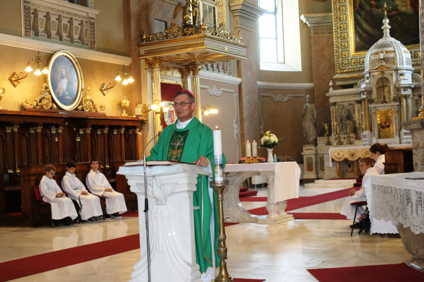 Majd e szavakkal fordult a hívekhez Schönberger Jenő püspök: „Kedves nagyszülők, kedves idős testvérek! Krisztusban szeretett testvérek! A Szentatya úgy akarja látni az Egyházat, mint egy nagy családot. Mennyivel inkább szeretné a jó Isten így látni! Mennyivel inkább adja az Úr kegyelmét ahhoz, hogy tényleg így tudjunk élni, ezért mondja a mai szentleckében Szent Pál apostol, – hogy »még azt sem tudjuk, hogyan kell helyesen imádkozni«. De tudjuk-e, hogy bennünk él a Szentlélek? A bérmálás szentsége nagy kegyelem, hiszen attól kezdve a Szentlélek él bennünk, és a Szentlélekkel együtt a teljes Szentháromság. Tudjuk-e mire van szükségünk? Mi nem, de ő tudja. A Szentlélek tudja, és ez a Szentlélek imádkozik, és akkor is kéri a kegyelmet számunkra, amikor mi nem is törődünk vele. Hagyjuk, hogy ez a Lélek működjön bennünk! Bízzuk életünket a Szentlélek vezetésére, és tegyük a szeretet apró jeleit!