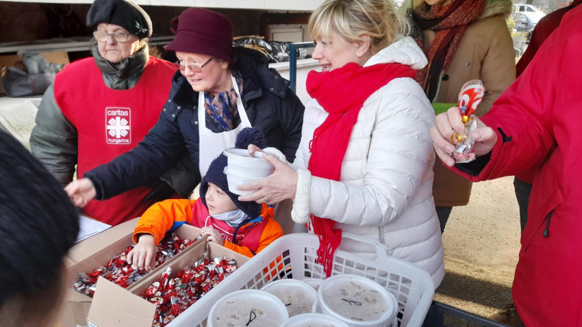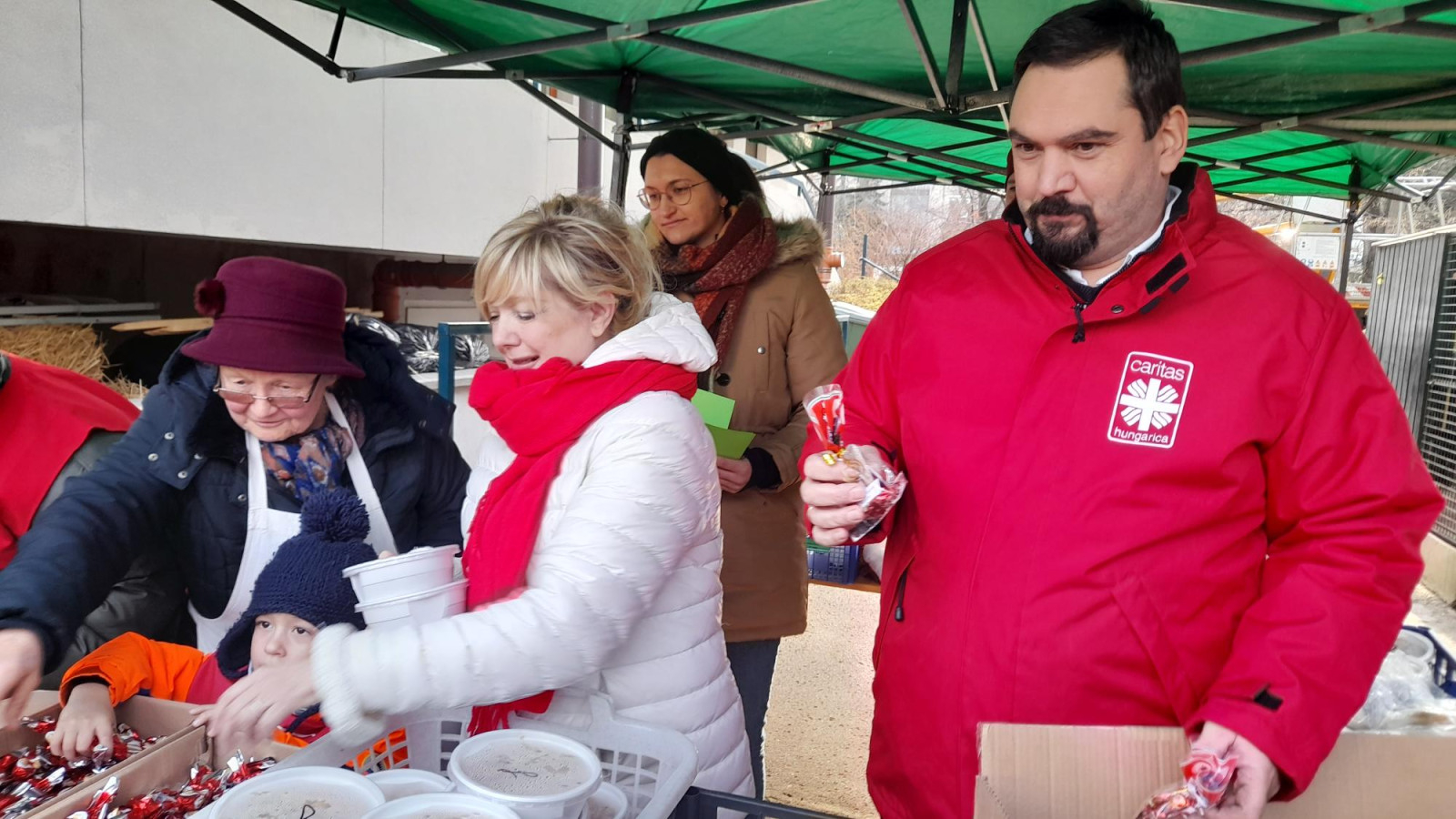 A Katolikus Karitászt Zagyva Richárd országos igazgató és németországi nagykövetünk, Klaus Höhn családja, fia Benjamin és unokája, Theodor is képviselte. A hagyományoknak megfelelően az eseményen a térség országgyűlési képviselője, Dunai Mónika is jelen volt. A meleg étel mellett szaloncukrot és karácsonyi édességet is kaptak azok az idősek és családok, akiknek enélkül a segítség nélkül ezen a napon nem lett volna meleg étel az asztalán.