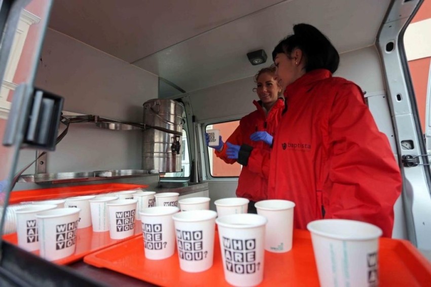 Az önkéntesek arra is nagy figyelmet fordítottak, hogy az étel és tea mellett egy-egy kellemes beszélgetésben is részük legyen a Batthyány téri központba látogató rászoruló embereknek.