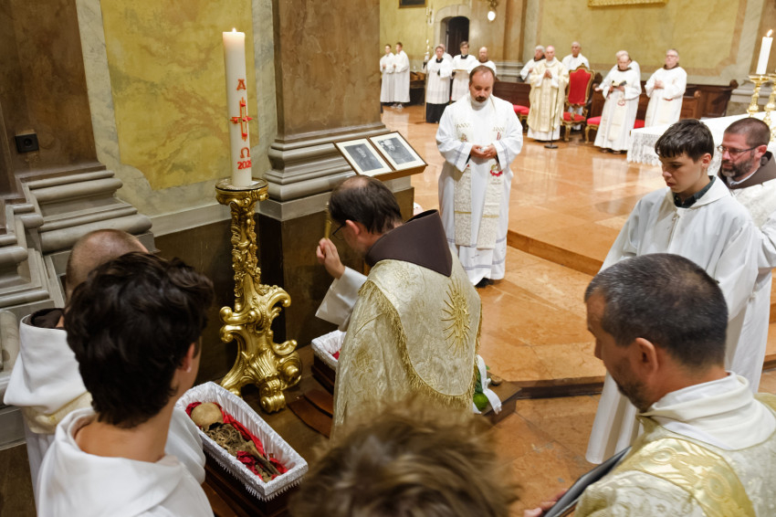 Ezt követően Berhidai Piusz OFM tartományfőnök beszentelte a két vértanú földi maradványait.