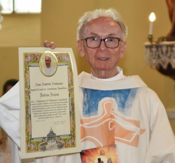 Június 24-én, Keresztelő Szent János ünnepén megtelt a kerepesi Szent Anna-templom és szinte a templomkert is: Frajna András nyugalmazott plébános pappá szentelésének 60. évfordulóját ünnepelték. A megjelent vendégek létszáma mellett az sem volt mindennapi látvány, hogy a bevonuló menet az oltártól egészen a templomajtóig ért.