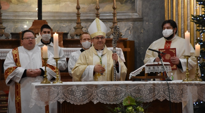 Szűz Mária, Isten Anyja ünnepén, 2021 első napján Marton Zsolt váci megyéspüspök mutatott be szentmisét a váci székesegyházban.
