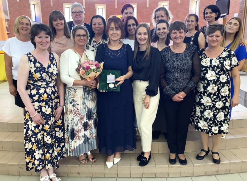 Szabóné Pinke Zsuzsanna a mosonmagyaróvári Hildegárd Óvoda pedagógusa, több évtizedes kiemelkedő pedagógusi munkájáért részesült az elismerésben. Lelkiismeretesen, naprakészen, folyamatosan frissülő szakmai tudással végzi munkáját. Csendes, figyelmes személyisége egyaránt megragadja a kisgyermekeket, szülőket és kollégákat. Nagy fokú érzékenységgel fordul a különös bánásmódot igénylő gyermekek felé, s magas szintű szakmai tudásával törekszik arra, hogy mindenkinél egyénileg megtalálja a lehető legmegfelelőbb utat a fejlődésre. Az óvoda kiemelkedő rendezvényeit igényes műsorok megtervezésével és megvalósításával színesíti. Hitéleti tevékenysége példa lehet a fiatalabb generáció és a hozzá gyakorlatra érkező óvodapedagógus-jelöltek számára.