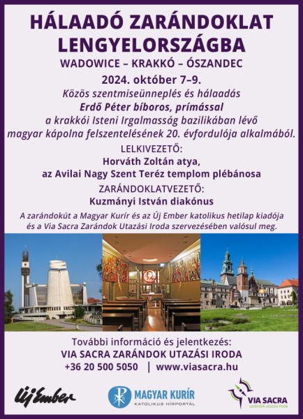 A zarándoklat bővebb programja és a jelentkezés IDE klikkelve érhető el.