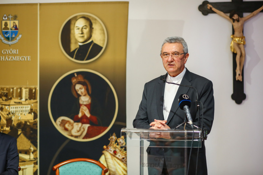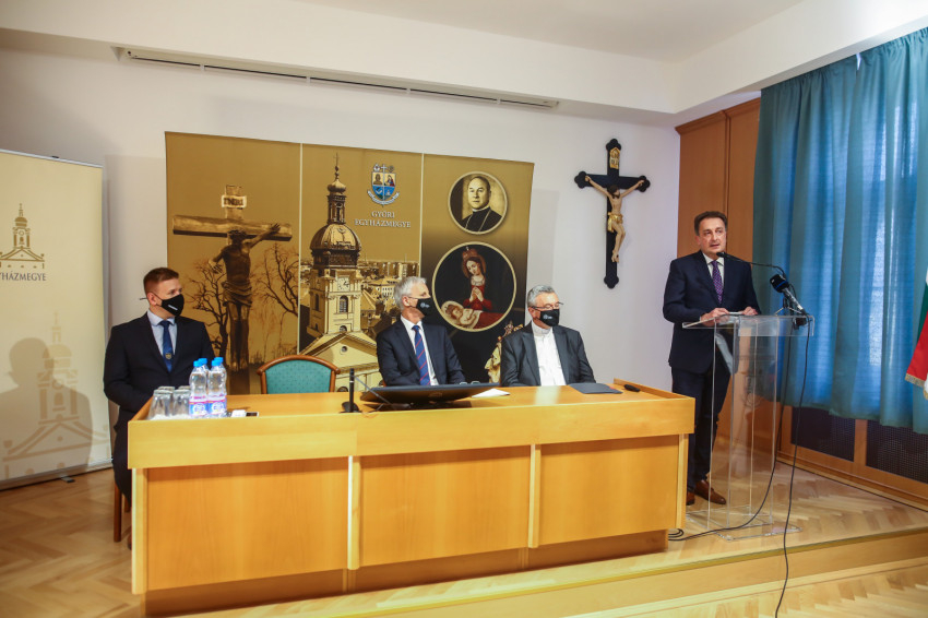 A média képviselőit a győri szeminárium épületében várták sajtótájékoztatóra. Veres András győri megyéspüspök annak a folyamatnak a jelentőségét hangsúlyozta, melynek során a Győri Egyházmegye életének, működésének meghatározó intézményei újulnak meg. „Győrben a kommunizmus évtizedeiben csak a bencések gimnáziuma működhetett. A rendszerváltás szabadságában létrehozott intézmények sok esetben már indulásukkor elavult épületet vehettek birtokba. Ma a szülők igényesek, megnézik, hova küldik gyerekeiket, és döntésükben nemcsak az oktatás-nevelés színvonala számít. Ezért különösen nagy jelentőségű ez a beruházás a győri belváros kiemelt és frekventált helyszínén. Bizalom van bennem, és imádkozom, hogy mintegy 1100 nap múlva a helyszínen tudjunk beszámolni az elkészült munkáról” – fogalmazott a főpásztor.