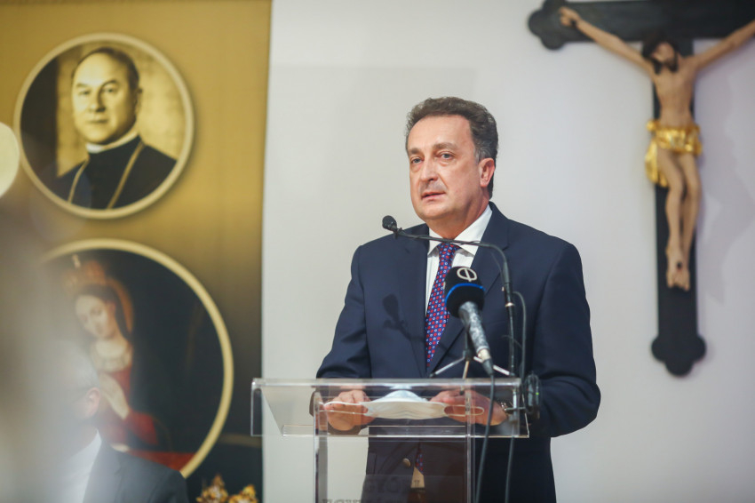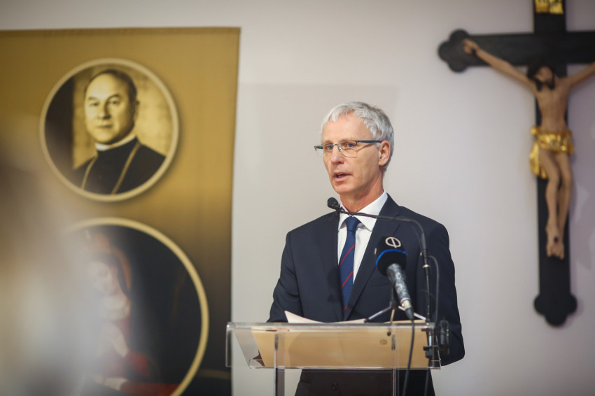 Soltész Miklós, a Miniszterelnökség egyházi és nemzetiségi kapcsolatokért felelős államtitkára Prohászka Ottokár azon gondolatát idézte fel, miszerint a nevelés munkáját a család és az iskola együtt, egymással összefogva végzi. „Ezt a feladatmegosztást lehetetlenítette el, tette tönkre a kommunizmus. Mindössze néhány ezer gyerek járhatott egyházi középiskolába. Most 230 ezer gyermek, fiatal tanul egyházi intézményekben – mutatott rá az államtitkár. Az Egyház segítséget ad a családnak a nevelésben, a kormány ezt a szolgálatot támogatja óvodák, iskolák építésével, felújításával – hangsúlyozta. „Ezeknek jó gazdája lesz az Egyház. Oktató-nevelő szolgálatának köszönhetően határozott értékrenddel lépnek ki az életbe diákjaik, haza- és városszeretetük erősíti helyben maradásukat” – tette hozzá.