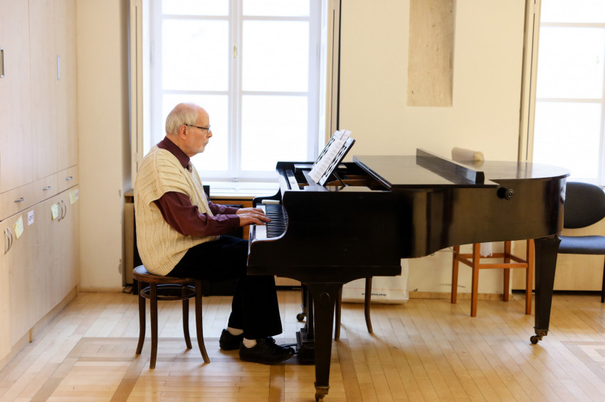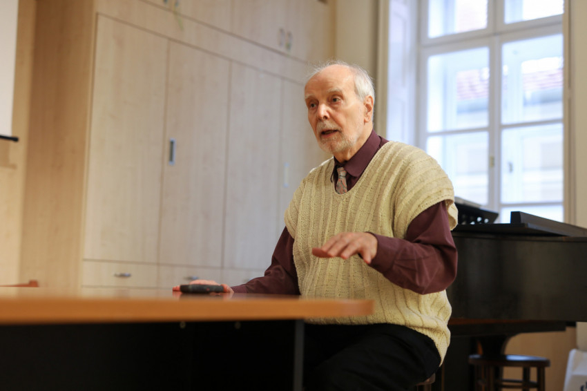 – Az érettségi évében, 1959-ben, mivel szerettem a matematikát és fizikát, mérnök akartam lenni. A Műegyetemre felvételiztem, de származási okokból a családból akkor még senkit sem vettek fel egyetemre, engem sem. A zeneiskola igazgatója, Németh Gusztáv nagyon szerette volna, ha zenei pályát választok, ezért elvitt Győrbe, ahol sikerült bejutnom a zeneművészeti szakiskolába. Kitűnő tanárokhoz kerültem. A világhírű Győri leánykar karnagya, Szabó Miklós tanár úr nagyon sokat törődött a zenei előmenetelemmel. Látta a Jóistentől kapott adottságaimat, ezért kemény szigorral komoly munkára késztetett. Ennek az lett az eredménye, hogy két évvel később, amikor a Zeneakadémiára felvételiztem, mindjárt a második évfolyamra vettek fel. Ugyanekkor került be a főiskolára későbbi feleségem, Tarkó Magda is, az első évfolyamra.