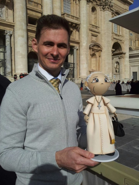 Érkezett egy derűt keltő ajándék is Magyarországról a nagy értékű csipkéken túl. Sokan fotózni kezdték a Szent Péter-téren a dekorgumiból készült babát, amely Ferenc pápát ábrázolja fekete táskájával a kezében. A pápa megáldotta, és visszanyújtotta, majd amikor kiderült, hogy neki hozták a zarándokok, mosolyogva, nagy örömmel elfogadta.
