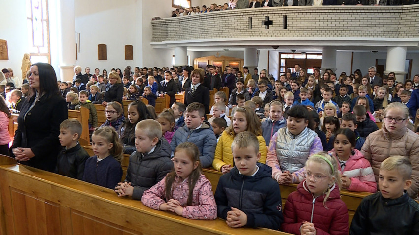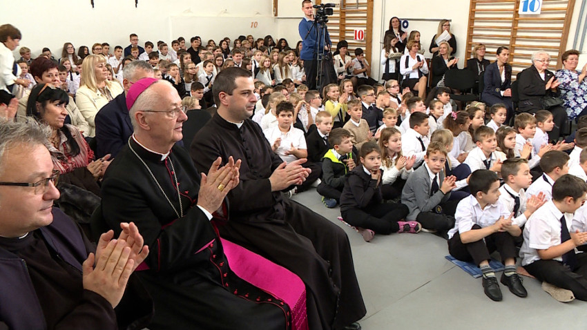A gyermekekhez fordulva úgy fogalmazott: „Az épület falait élettel, lelkesedéssel ti töltitek meg, az iskola veletek nyer értelmet. Ma benneteket is ünneplünk. Hiszem, nem véletlenül vagytok itt, a Szentlélek hívott ide benneteket, mert az Istennek nagy tervei vannak veletek!”