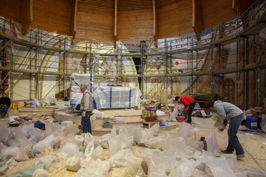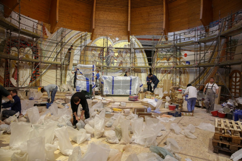– Az apszis mozaikjának témája Máté evangéliumából való, a 18. fejezetből: „Vigyázzatok, ne vessetek meg egyet sem e kicsik közül. Mert mondom nektek: angyalaik a mennyekben mindig látják Atyám arcát, aki a mennyekben van.”