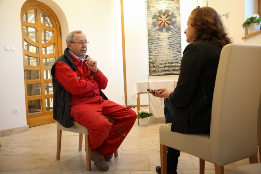 – Amikor Szederkényi Károly gazdagréti plébános meglátta San Giovanni Rotondóban a Pio atyáról készült mozaikképeimet, megkeresett telefonon. Sokszor hívott, és Rómában is felkeresett. Ezért egyszer, amikor Magyarországon utaztam át, eljöttem megnézni a helyet és azt láttam, hogy nemcsak a plébános aktív, hanem az egyházi közösség is nagyon eleven. Nagyon sok felkérést kapok, de csak azokat fogadom el, amelyek olyan helyről jönnek, ahol van élő közösség, kommunió, ahol spirituális szinten megértjük egymást, vagyis ahol megvalósul az a teológiai elképzelés az egyházról, amelyre oly nagy szükség van. Mivel ez itt megvolt, elvállaltam a munkát.