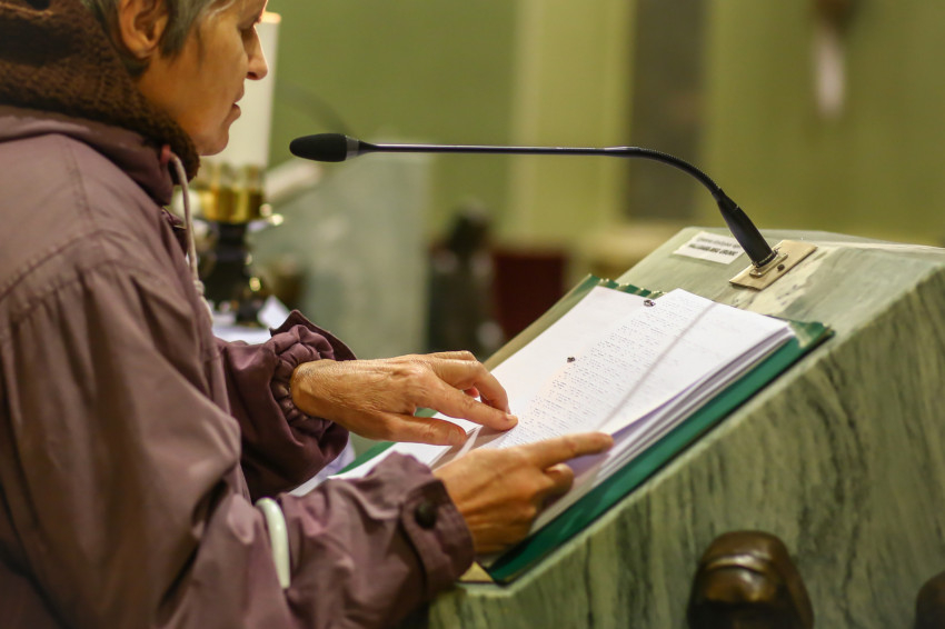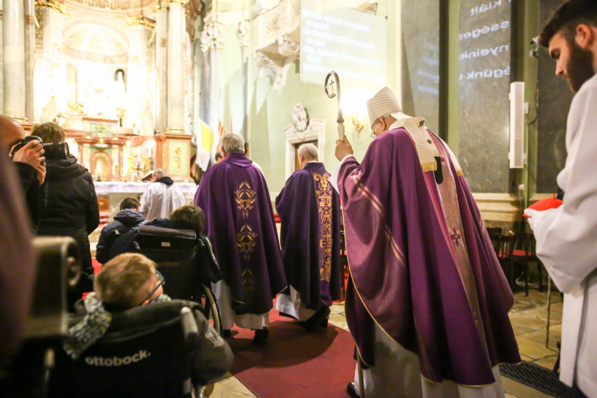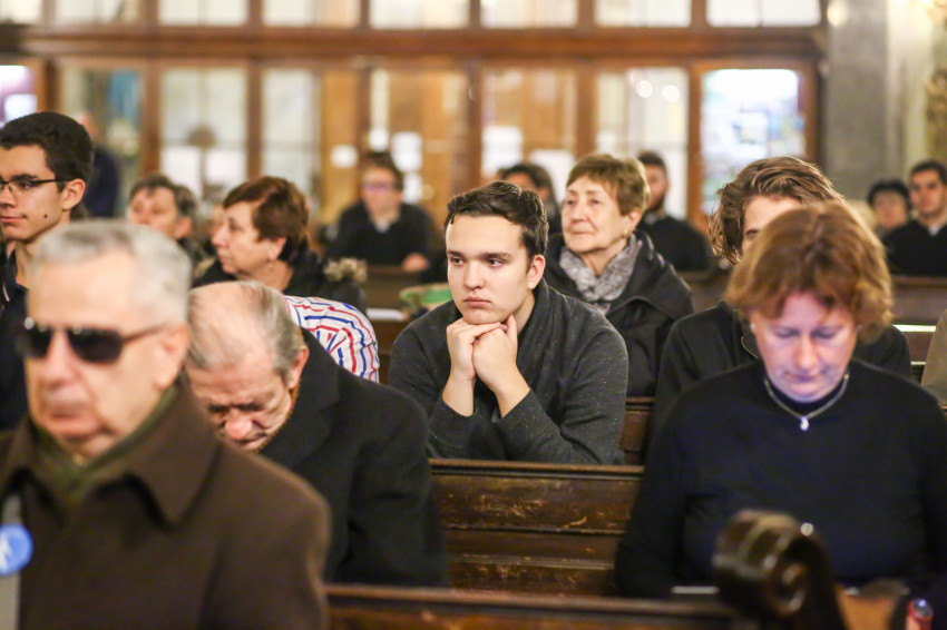 A szentmise főcelebránsa és szónoka Erdő Péter bíboros, prímás. Az énekekbe mindenki lelkesen kapcsolódik be. A felolvasók is látássérültek. Olyan gyorsan olvasnak, hogy csak akkor hisszük el, nem a szemükkel követik a betűket, hanem ujjukkal érzékelik a Braille-írás pontjait, amikor kollégám lencsevégre tudja őket kapni.