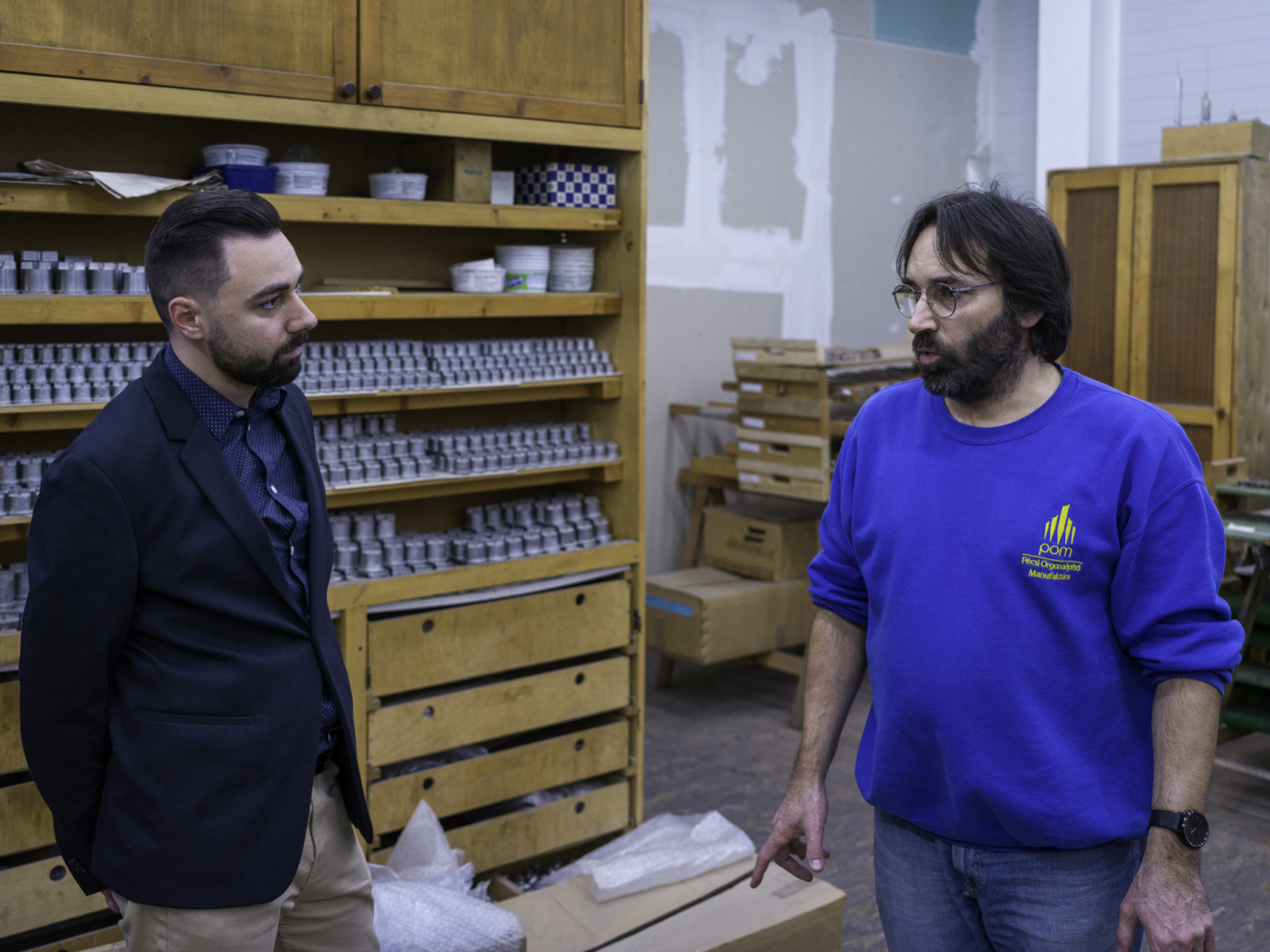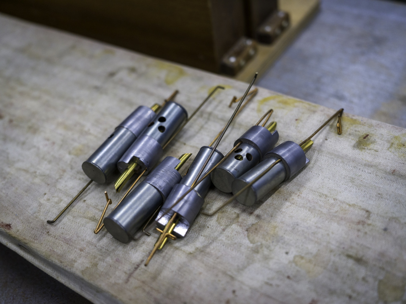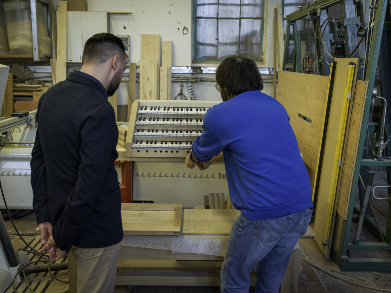 Budavári Attila a manufaktúra épületeiben bemutatta a különböző munkaállomásokat, folyamatokat, gépeket, nyersanyagokat. Elmondta, hogy egy-egy síp elkészítése akár több napi munkát is igényelhet, a székesegyház orgonájában pedig közel 2500 síp van.