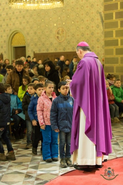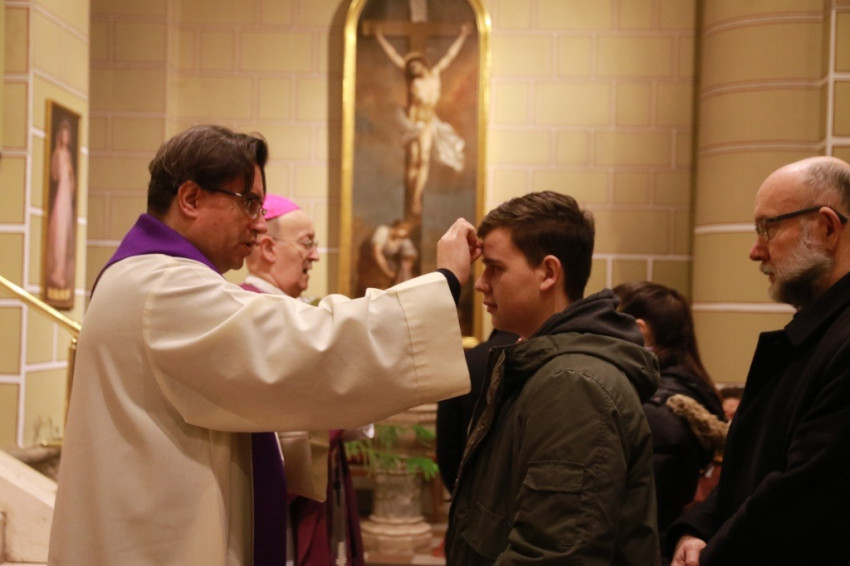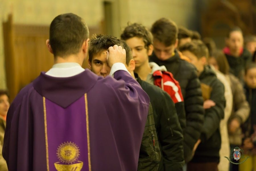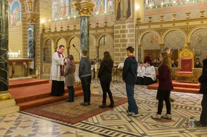 A reggeli ünnepi szentmisén Udvardy György megyéspüspök és a koncelebráns papok egymás és a győri katolikus iskolaközpont közössége tagjai (diákok, tanárok, szülők) homlokára is felrajzolták hamuval a kereszt jelét.