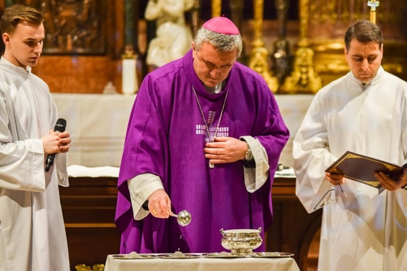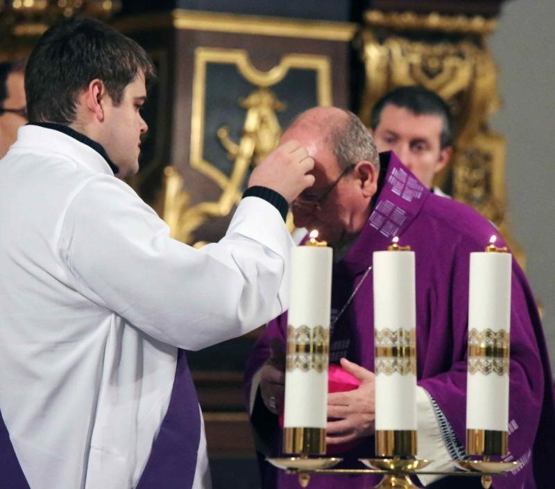 A szentbeszédet követően a főpásztor megáldotta a tavalyi virágvasárnapi barkák hamvát, majd sor került a hamvazás szertartására.