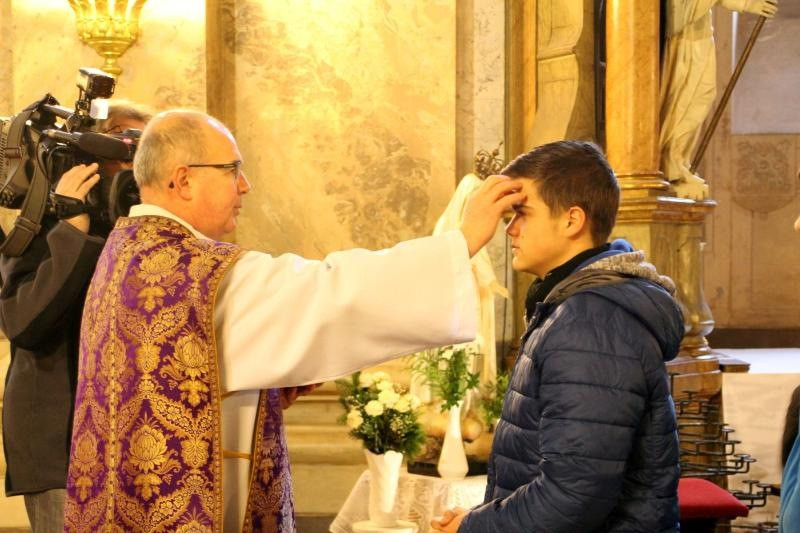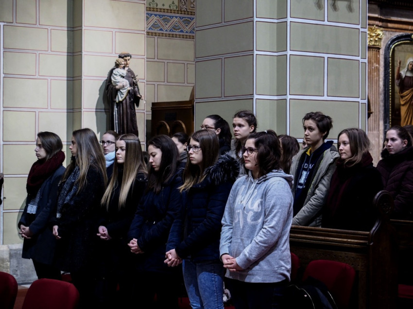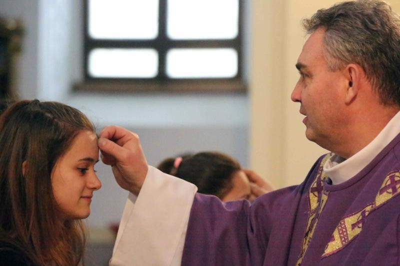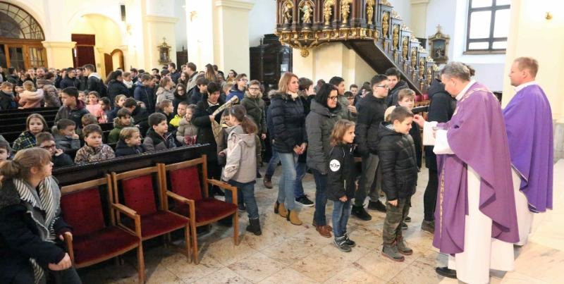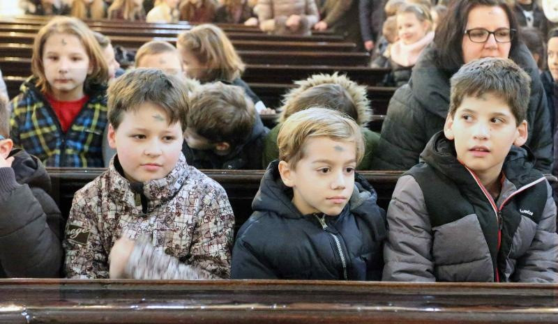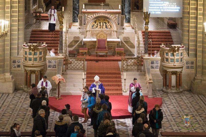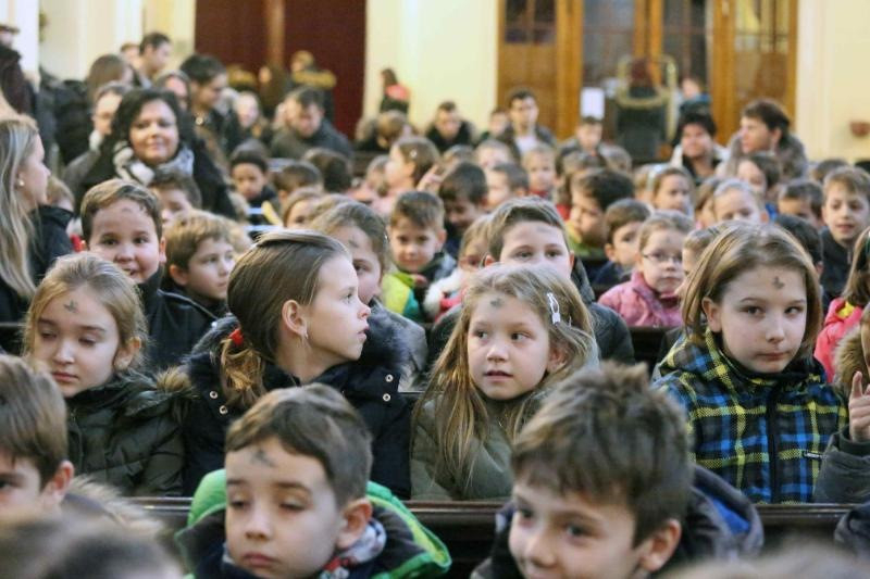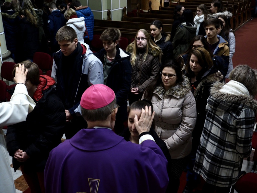 A veszprémi Padányi Katolikus Iskola növendékei a Szent Mihály-bazilikában vettek részt szentmisén hamvazószerdán, és részesedtek a bűnbánat jelében, a hamvazásban.