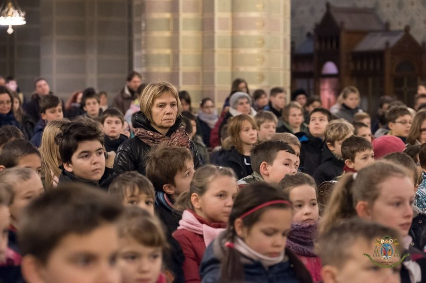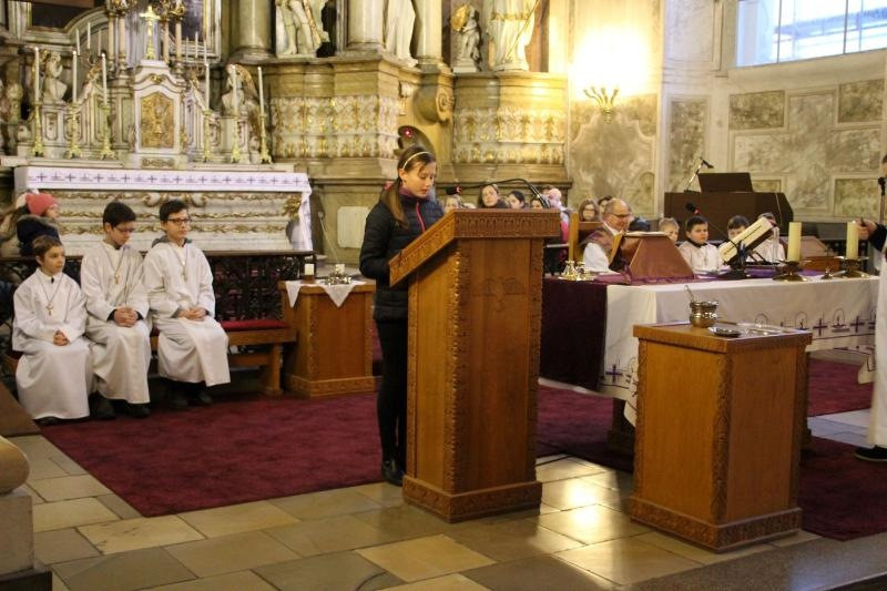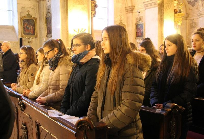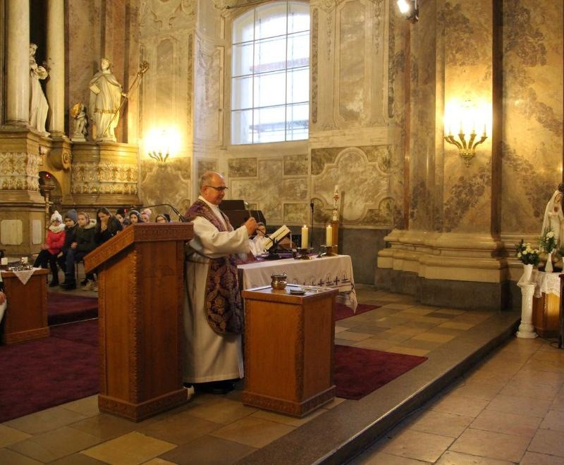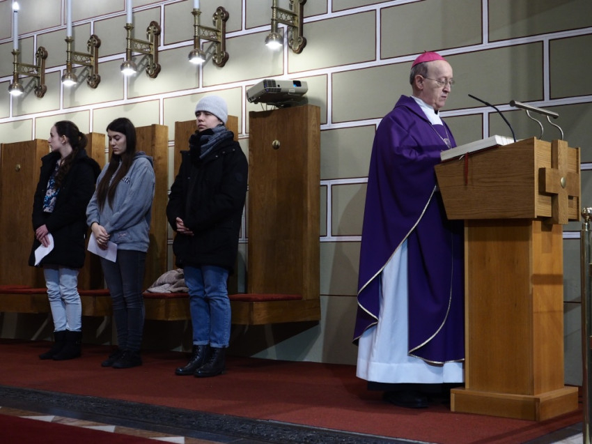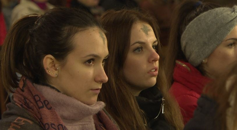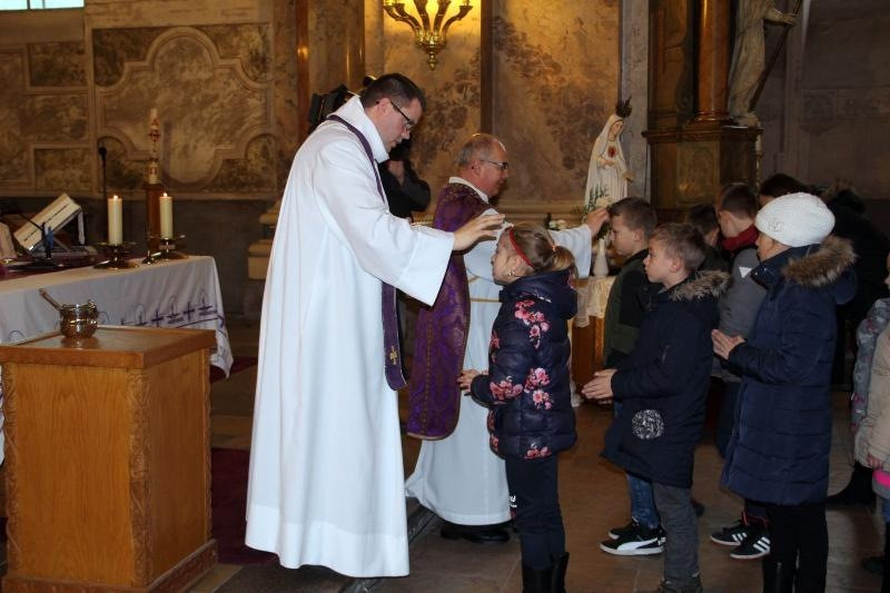 A veszprémi Padányi Katolikus Iskola növendékei a Szent Mihály-bazilikában vettek részt szentmisén hamvazószerdán, és részesedtek a bűnbánat jelében, a hamvazásban.