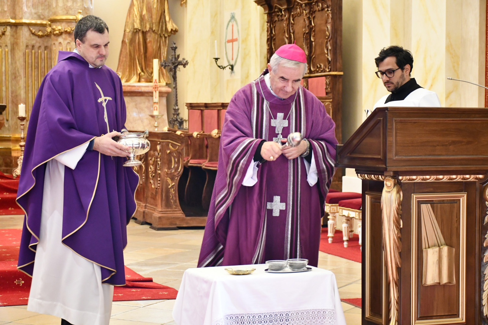 A szentmisén a megyéspüspök megáldotta a hamut, amivel azután keresztet rajzoltak a hívek homlokára, a bűnbánat jeleként. „Alázattal könyörögjünk Istenünkhöz, mennyei Atyánkhoz, hogy árassza jóságosan bőséges kegyelmét erre a hamura, amelyet a bűnbánat jeléül fejünkre hintünk. Istenünk, téged az alázatosság könyörületre indít, a bűnbánat pedig megengesztel. Hallgass kegyesen könyörgésünkre, és amikor híveid fejére hamut hintünk, áraszd rájuk szent áldásodat, hogy buzgón gyakorolva a nagyböjt bűnbánati cselekedeteit, szent Fiad húsvéti feltámadását megtisztult lélekkel ünnepeljék” – imádkozott a szertartás keretében a Pál József Csaba megyéspüspök.