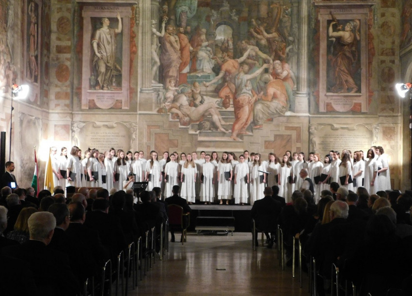 A vatikáni intézmények tisztviselői, különféle római egyházi és társadalmi szervezetek, valamint a Szentszéknél akkreditált diplomáciai testület képviselői és a római magyar közösség tagjai vettek részt a hangversenyen, amit a vatikáni hivataloknak otthont adó Palazzo della Cancelleria Giorgio Vasari freskóival ékes dísztermében rendeztek.