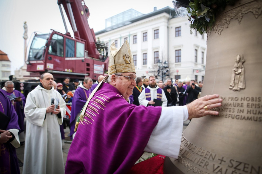A főpásztor ezt követően megfogalmazta a harangok hármas küldetését. Először is hívják az élőket, a keresztségben az Isten számára lefoglalt népet, továbbá emlékeztessenek arra, hogy a hívő embernek minden embertársa irányában küldetése van. A harangok második feladata az, hogy emlékeztessenek bennünket a halottainkra, azokra, akik már nincsenek köztünk, emellett pedig arra, hogy a mi életünk is véges, és úgy kell élnünk, ahogy a bencés regula tanácsolja a keresztény embernek: naponta gyarapodva a szeretetben. A harangok harmadik küldetése a jó és rossz közötti választásra való figyelemfelhívás. Várszegi Asztrik a jó és rossz közötti választás fontossága kapcsán kiemelte Jézus mélységes realizmusát: imádságában nem azt kérte az Atyától, hogy övéit szabadítsa meg ettől a világtól, hanem azt, hogy őrizze meg őket a rossztól. A főapát hangsúlyozta, a harangok hármas küldetése mellett a legfőbb, hogy Isten irgalmas szeretetére irányítsák a figyelmünket.