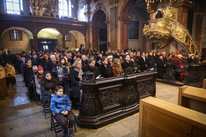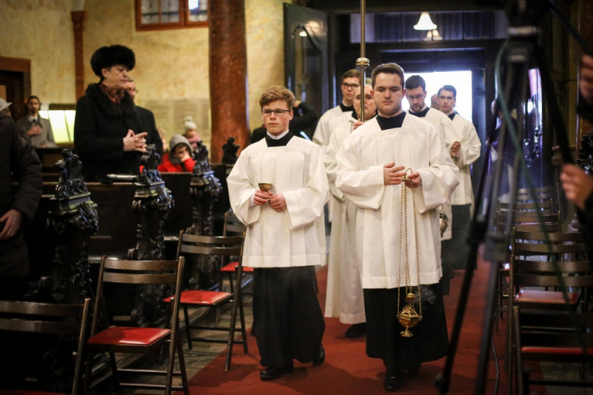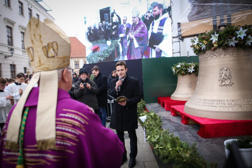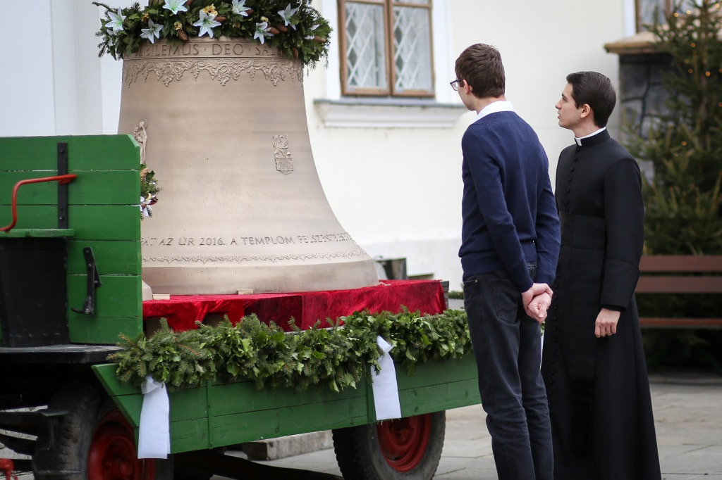 A felszentelés liturgiája előtt Sárai-Szabó Kelemen OSB, a Loyolai Szent Ignác bencés templom templomigazgatója köszöntötte a résztvevőket, a főpásztorok mellett – többek között – Borkai Zsoltot, Győr polgármesterét, Bogisich Ferenc üzletembert, aki vállalkozótársaival anyagilag segítette a harangöntés tervének megvalósulását, valamint Johannes Grassmayrt, az innsbrucki Grassmayr harangöntő műhely vezetőjét. Sárai-Szabó Kelemen elmondta, az ünnep örömét beárnyékolja, hogy Horváth Dori Tamás OSB, a győri Szent Mór Bencés Perjelség nyugalmazott perjele december 14-én elhunyt.