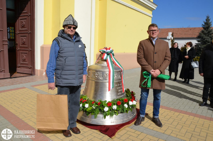 Nagy Antal János világi elnök is köszöntötte a megjelenteket és mindazokat, akik adományaikkal hozzájárultak, segítették a harang megújulását. Kiemelte, milyen összetett munka a harangöntés, szinte nem is szakma, hanem művészet, fogalmazott. Az újonnan elkészült harang súlya 1223 kilogramm; vörösréz (78 százalék) és nagy tisztaságú ón (22 százalék) ötvözete.