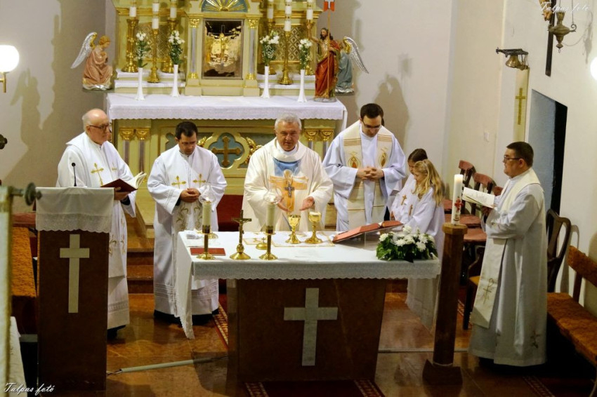 A legszentebb áldozatot Veres András győri megyéspüspök mutatta be a kimlei Sarlós Boldogasszony-templomban. A főpásztor szentbeszédében kitért többek között arra is, hogy a harang egybegyűjti a közösséget. Isten országa, ahol az öröm és a béke lakik, mind a templomon belül, mind a templomon kívül jelen van. Jézus Krisztus egy új világot hirdetett, és arra kér bennünket, hogy ennek aktív részesei legyünk.