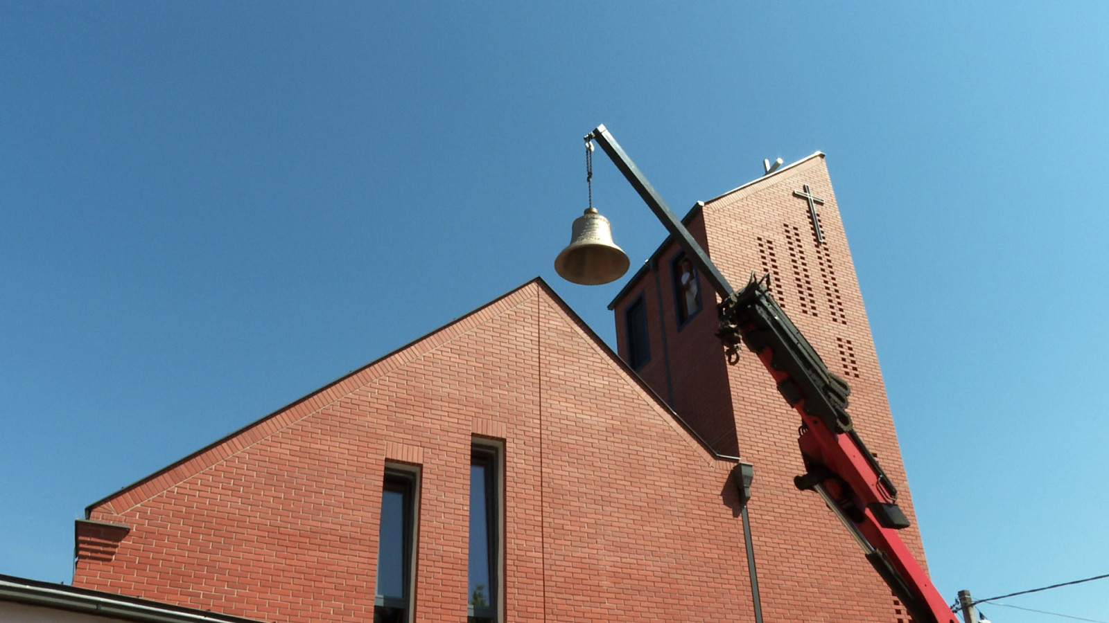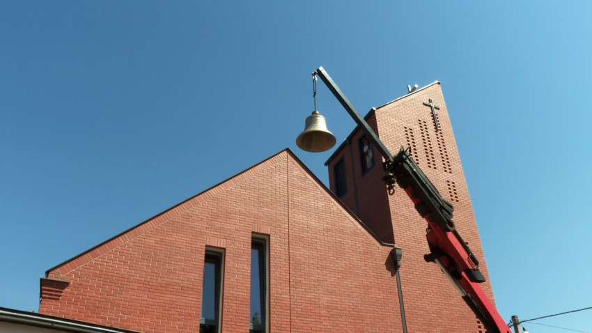 Eközben pedig elkezdődött a harangok toronyba emelése és a tartószerkezetre való fölhelyezésük. Mire a szentmisének vége lett, pontban délben az ünneplők együtt örülhettek a harangszónak.