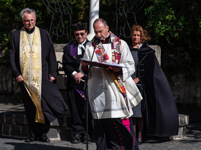 A főpásztor könyörgő imádsága után Závodi Zsuzsanna református és Isó Zoltán evangélikus lelkész mondott emlékbeszédet.