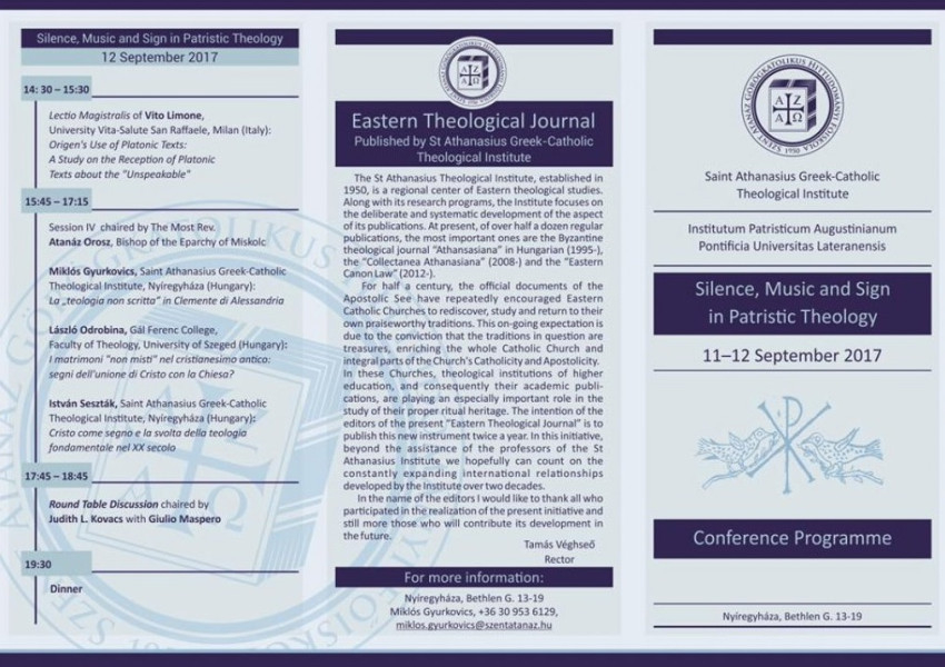 A konferencia címe: Silence, Music and Sign in Patristic Theology (Csönd, zene és jel a patrisztikus teológiában). Az eseményt Kocsis Fülöp érsek-metropolita nyitja meg szeptember 11-én 9 órakor.