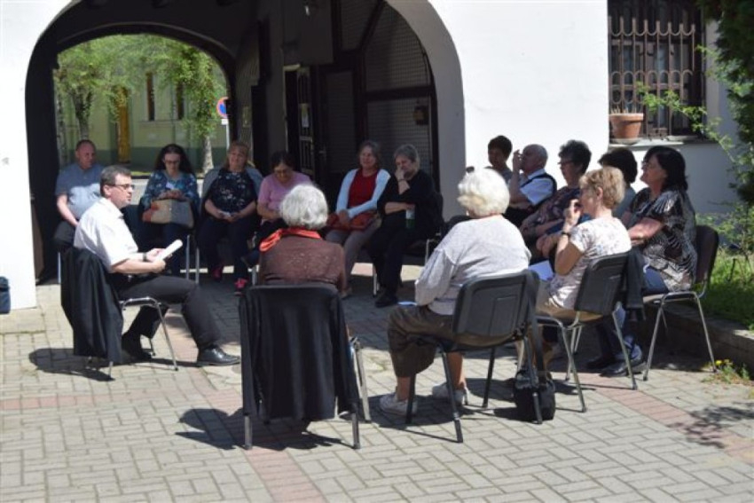 A harmadik kiscsoportban Bajuszné Orodán Krisztina koordinálta a beszélgetést. Itt szóba került többek között, milyen nagy feladat az önkénteseknek, lelkigondozóknak, hogy eljuttassanak egy beteget a kápolnáig, a szakrális térig, hogy ott imádkozhasson.