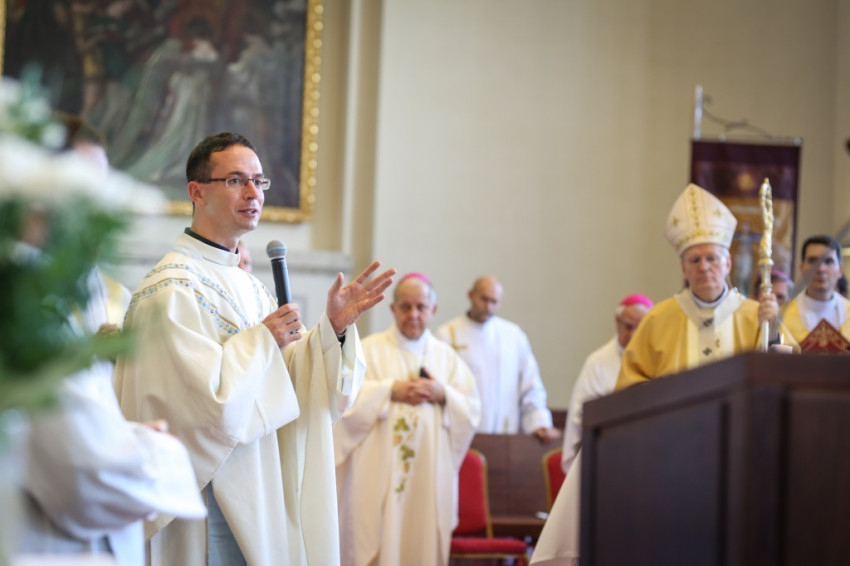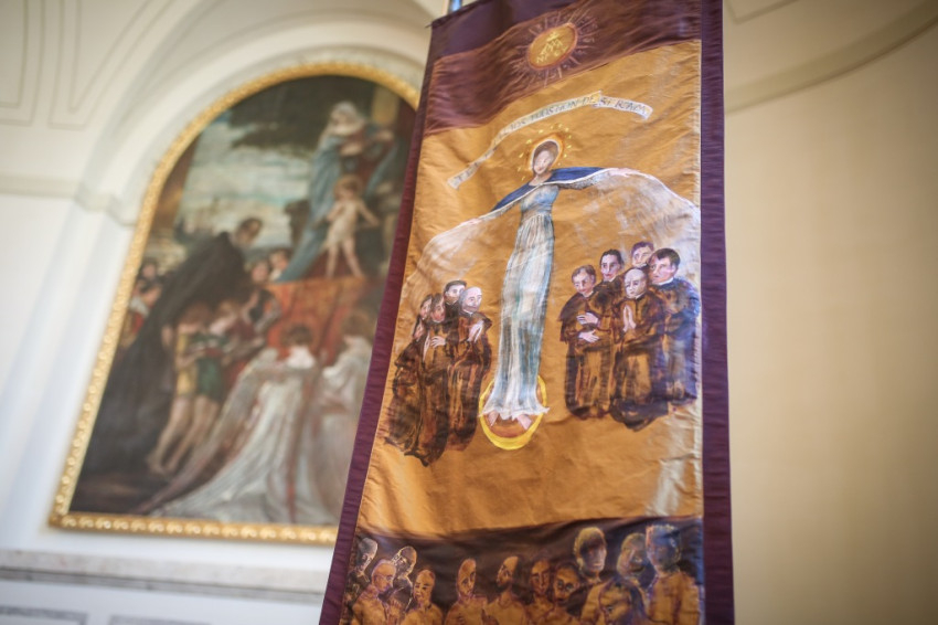 Labancz Zsolt piarista tartományfőnök a megjelenteket köszöntve elmondta, Ferenc pápa ezt az évet a piaristák számára jubileumi évnek nyilvánította. Ez azt jelenti, hogy ezen időszak alatt különös módon fordulhatnak az Úristenhez kegyelmi ajándékaiért, és abban is biztosak lehetnek, hogy Ő ezt meg is fogja adni. Felhívta a figyelmet arra a zászlóra, mely idén készült a jubileumok alkalmából. Rajta a Szűzanya terjeszti ki palástját a piaristákra. Felette pedig ez olvasható: „Tu et filios tuos non deseram” (Téged és fiaidat nem fogom elhagyni.)
