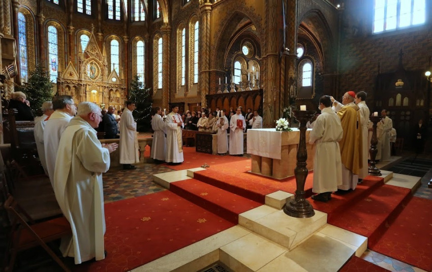 A hálaadó szentmisén számos pap, köztük Snell György esztergom-budapesti segédpüspök is koncelebrált, a szertartáson részt vettek az Egyetemi Katolikus Gimnázium növendékei.