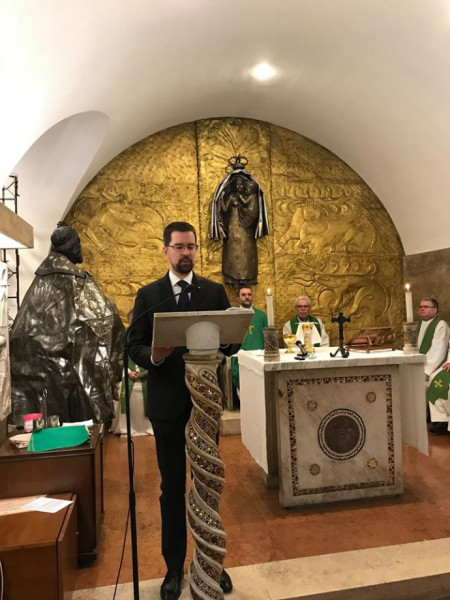 A hívek nevében Németh László prelátus, olaszországi főlelkész köszöntötte a kinevezett érseket, akinek szolgálatára a jelenlévők imáit kérte. Imádkoztak a szentmisén Jakubinyi György nyugalmazott gyulafehérvári érsekért, a határon túl és szerte a világban élő magyarokért, hogy legyenek főpásztoraik, megőrizhessék hitüket és identitásukat. A nemzetek jövőjéért, az európai kereszténység megmaradásáért is fohászkodtak. Megköszönték Kovács Gergelynek a római magyar közösség lelkipásztori ellátásában végzett szolgálatát, a szentmiséket és a szentségek kiszolgáltatását. A Rómában élő magyar papoktól egy Erdélyt ábrázoló térképet, a hívő közösségtől egy történelmi Magyarország-térképet kapott Kovács Gergely, aki éppen a nemzeti összetartozás évében kezdi meg gyulafehérvári érseki szolgálatát. Ez az összetartozás jellemezze a gyulafehérvári hívekkel, a világ magyarságával való kapcsolatát, s ugyanígy érezze mindig az olaszországi magyarok iránta való kötődését – fogalmazott Németh László.