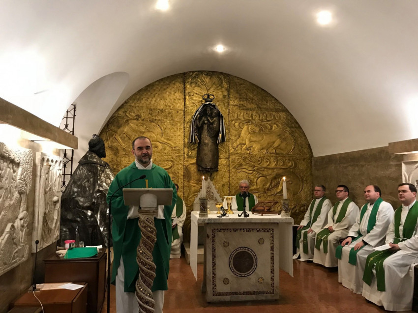 Homíliájában felidézte, hogy 1990 óta számtalanszor megfordult a vatikáni magyar kápolnában; eleinte mint szeminarista, később pedig papként mutatott be itt szentmisét. Első perctől fogva fontos volt számára annak tudata, hogy a magyarság sorsa milyen szorosan összefonódik Szent Péterrel. Erről tanúskodik, hogy Szent István király már a kezdetekben zarándokházat építtetett az apostolfejedelem sírja közelébe. Kovács Gergely felidézte: 1990-ben érkezett Rómába tanulmányai végzésére, ekkor már tíz éve állt a Magna Hungarorum-kápolna. Most visszatekintve, van harminc közös évünk – mondta a kinevezett érsek személyes hangú szentbeszédében, hálát adva az elmúlt időszak kegyelmeiért. – Jó érzés, hogy elmondhatjuk: itt itthon vagyunk. Közel a szent pápák sírjához, magyar boldogokkal és szentekkel körbevéve a kápolna domborművein. Nem elég ugyanakkor jelen lenni, hit is kell hozzá.