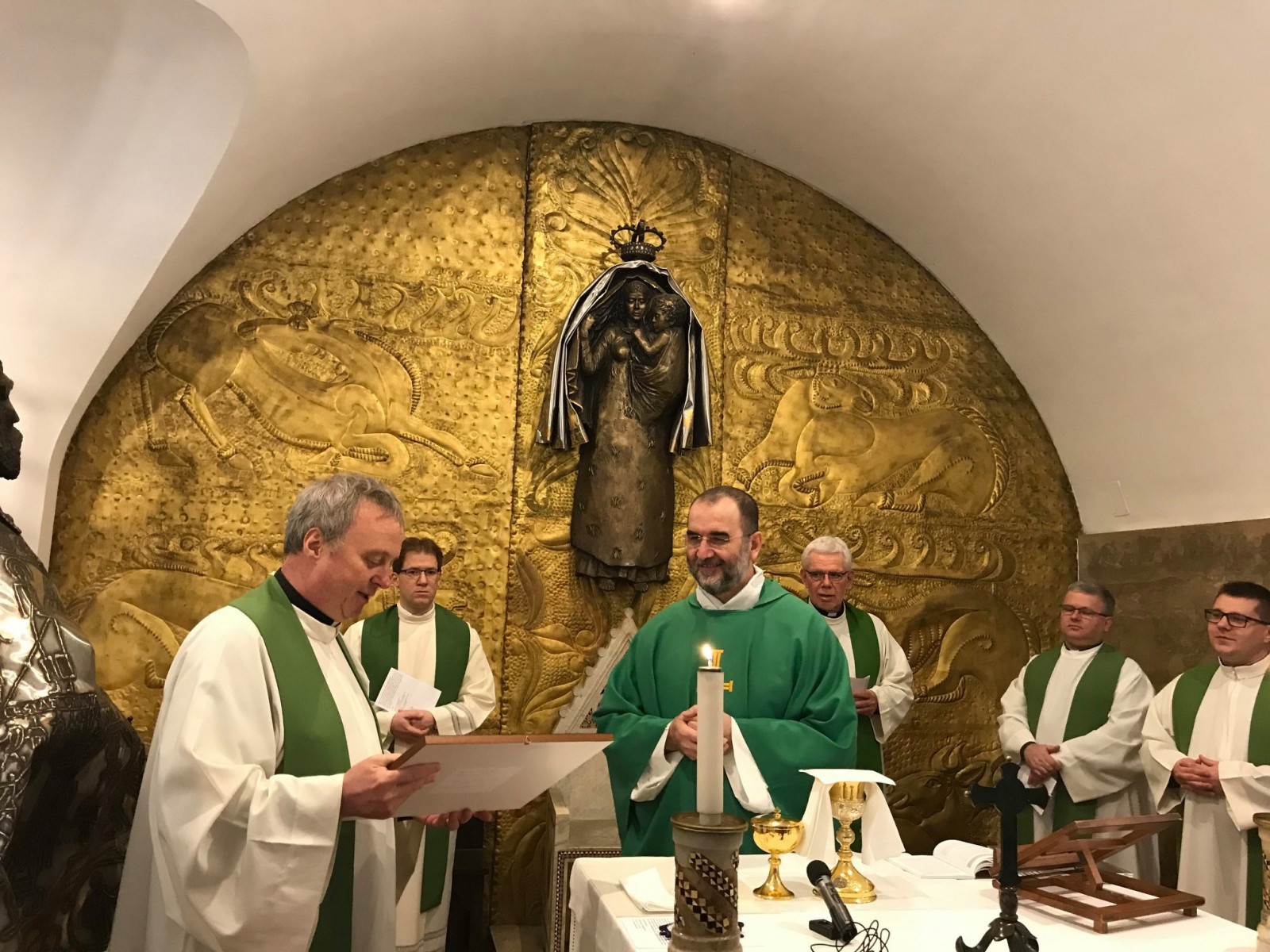 A Rómában tanuló és dolgozó papok, a szentszéki nagykövetség munkatársai, élükön Habsburg-Lotharingiai Eduárd nagykövettel és Érszegi Márk Aurél első beosztottal, az örök város magyar hívő közössége, zarándokok voltak jelen a szentmisén. Koncelebrált Németh Norbert, a Pápai Magyar Intézet (PMI) rektora; Vértesaljai László jezsuita szerzetes, a Vatikáni Rádió magyar adásának felelős szerkesztője; Patsch Ferenc jezsuita szerzetes, a Pápai Gergely Egyetem tanára; Ádám Miklós atya és Monostori László atya, a PMI növendékei; Jávorka Lajos, a római Fokoláre közösség papja; Tomán Zoltán, Rómában tanuló temesvári egyházmegyés pap.