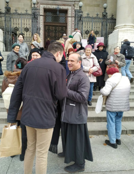 A debreceni kamilliánus családcsoport képviseletében ketten vettünk részt a programon. Csoportunkat György Alfréd kamilliánus tartományfőnök vezette. Először a Szent István-bazilikába vezetett utunk, ahol a Szent Jobb előtt közös imát mondtunk a békéért, majd a Parlamenthez sétáltunk, ahol a látogatás során megtekintettük a Szent Koronát is. Ezt követően közös ebédre hívta a képviselő úr a kamilliánus testvéreket.