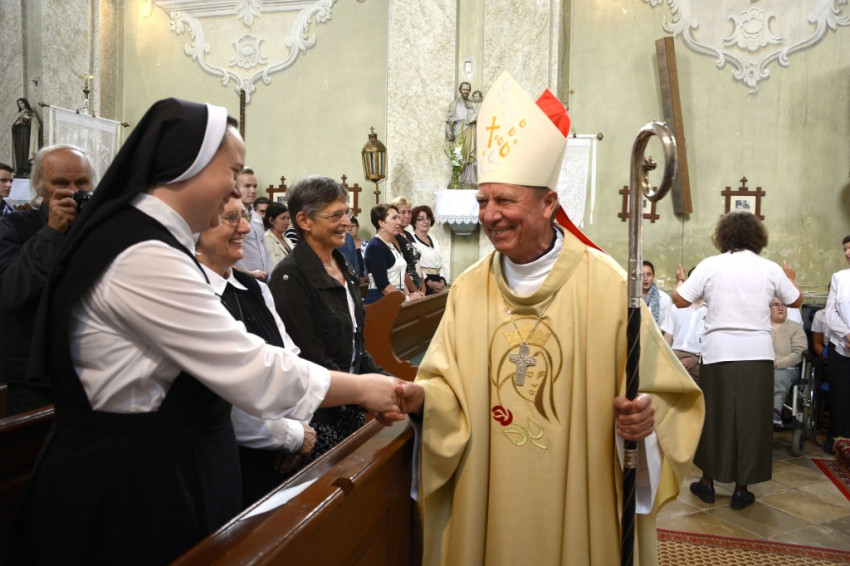 Ezt követően arról elmélkedett Miklós püspök, hogyan került egyre jobban előtérbe az egyházban az irgalmasság gondolata. Szent II. János Pál pápa elrendelte az isteni irgalmasság ünnepét és szentté avatta Fausztina nővért. XVI. Benedek pápa folytatta, Ferenc pápa pedig még hangsúlyosabbá tette ezt a gondolatot. Gyakran idézi a pápa Máté evangéliumából az irgalmasság cselekedeteit. Ezek a cselekedetek, az irgalmasság szentévének üzenete él az ipolytölgyesi otthonban is – Beer Miklós hálát adott Istennek, amiért megértették, befogadták és tovább adják az isteni irgalmasságot. A szenvedők között próbáljuk meg megsejteni Isten szándékát! – buzdított, és megpróbálta szavakba önteni a titkot, amelyet ebben a szenvedésben és örömben osztozó nagy családban megél az ember: „emberi létünk titka más megközelítésben kerül itt közel hozzánk, megsejtjük, hogy az élet ott kezdődik, ahol van szeretet, együttérzés, önzetlen jóság”. A Jóisten ránk bízza testvéreinket. Ha Krisztust követve járunk, irgalmas arcát tükrözzük a világban, akkor lesz jövője Európának, akkor lesz jövője az egyháznak – figyelmeztetett.