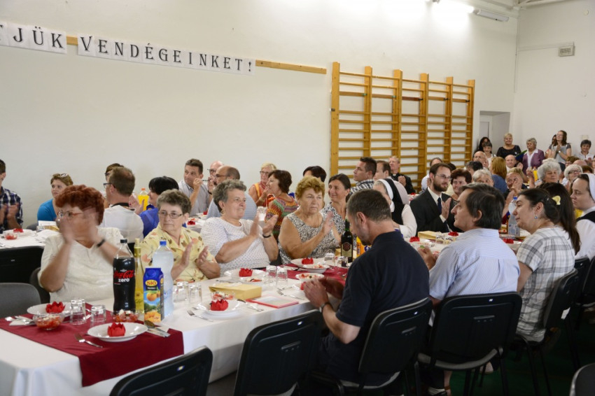 A szentmisét követően köszöntésekkel, ebéddel és a lakók műsorával, énekkel, tánccal folytatódott a program. Egervári Ágnes, a Katolikus Szeretetszolgálat főigazgatója hangsúlyozta, az elődök kitartása kellett ahhoz, hogy az intézménynek ma is „varázsa legyen”. Nem kötelezően elhangzó múltidézés volt ez, hiszen az ünnepen jelen volt Piroska nővér, aki 1986-tól tíz éven át igazgatta az intézményt, ott voltak a nyugdíjas dolgozók, a legrégebbi munkatársak elismerő oklevelet vehettek át, és külön köszöntötték a legrégebbi lakókat is.