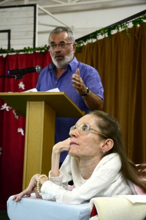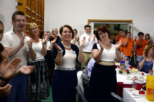 Szalai Zsuzsanna köszönetet mondott minden támogatójuknak, köztük a kiemelt támogatóknak: két belga pedagógusnak, egy holland csoportnak és a Rotary Clubnak. Elkötelezett törődésüket, barátságukat méltató szavai pár perccel később igazolást nyertek a belga John Van Miegheim tört magyarsággal megfogalmazott beszédében. John rendszeres látogatója az otthonnak, ismeri a gondozottakat, a nagy család tagja, ugyanakkor távolabbról is rálát arra, ami itt történik és megfogalmazott egy olyan gondolatot, amelynek távlatán talán maguk az ott dolgozók is meglepődtek. A falu 329 lakója, a 150 gondozott és gondozóik különleges integrációt valósítanak meg – mondta. Együtt vannak a hétköznapi élet színterein – boltban, templomban, sportpályán –, egy olyan integrációs modellt valósítanak meg, amely példa lehet Magyarország, Európa és az egész világ számára.