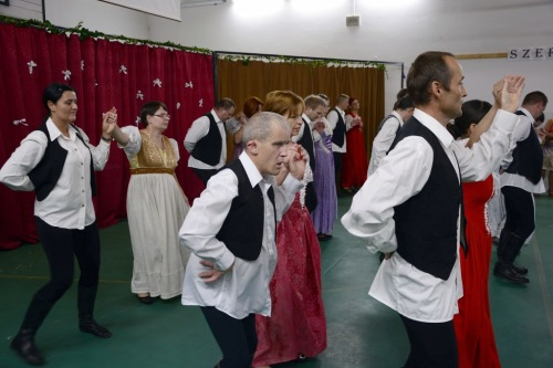 Búcsúzóul énekekkel, tánccal kedveskedtek a gondozottak a látogatóknak. Sok gondoskodó kéz vette őket körül és segített nekik, hogy ünnepelhessenek. Az egyik kerekesszékes, értelmi fogyatékkal élő férfi búcsúzáskor utánam szólt: „Ma mulatunk!” Látszott rajta, hogy tartóztatna – ebbe a nagy családba mindenki belefér, az idegen, a kíváncsiskodó is. Mindenki, aki rá néz, aki szól hozzá, aki megsejtett valamit a titokból, a szenvedés és az öröm titkából.