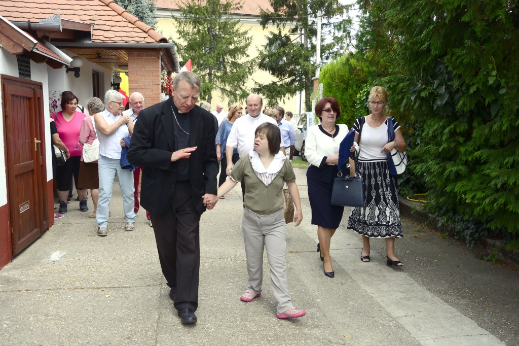 Beer Miklós kérdésünkre megfogalmazta, mit is jelenthetnek számunkra gondozásra szoruló embertársaink. „Szegények mindig lesznek köztetek” – tanítja Jézus a betániai vacsorán. Egymásra bíz bennünket a Jóisten, és amikor észrevesszük, mennyien várnak a segítségünkre, mi magunk is felismerjük saját törékenységünket. A püspök otthonosan mozgott az intézményben, rákérdeztünk és kiderült, hogy korábban, amikor Pilismaróton szolgált, minden nyáron elhozta ide a hittanos gimnazistákat – először látogatóba jöttek, aztán volt, aki egy-két hétig is maradt, hogy segítsen. Ő maga váci megyéspüspökként minden évben legalább egyszer ellátogat az otthonba, ahol sok kedves ismerőse van – úgy tűnt, ő is családtag ebben a különleges, nagy családban.