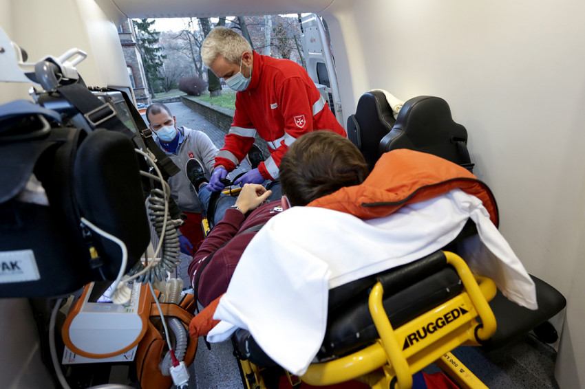 A máltai rohamkocsin a mindenkori 4 fős személyzet minden tagja önkéntes – az orvos, az ápoló, a szekundáns és a gépkocsivezető –, egészségügyi szakdolgozók és a Máltai Szeretetszolgálat képzésén végzett civil segítők. A civilek között van mérnök, operatőr, katolikus pap, akik kemény vizsgák után segédápolóként lettek tagjai a mentő személyzetének.