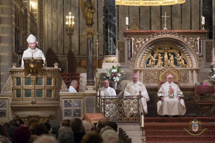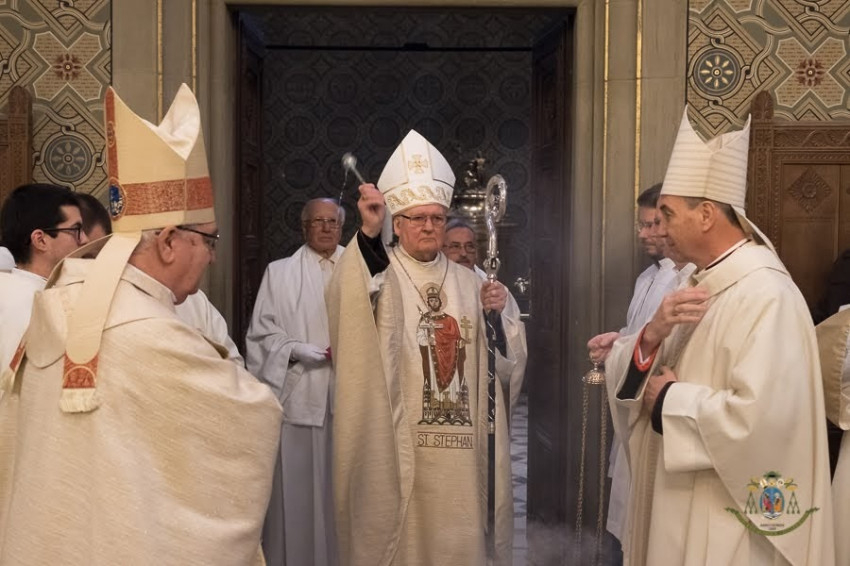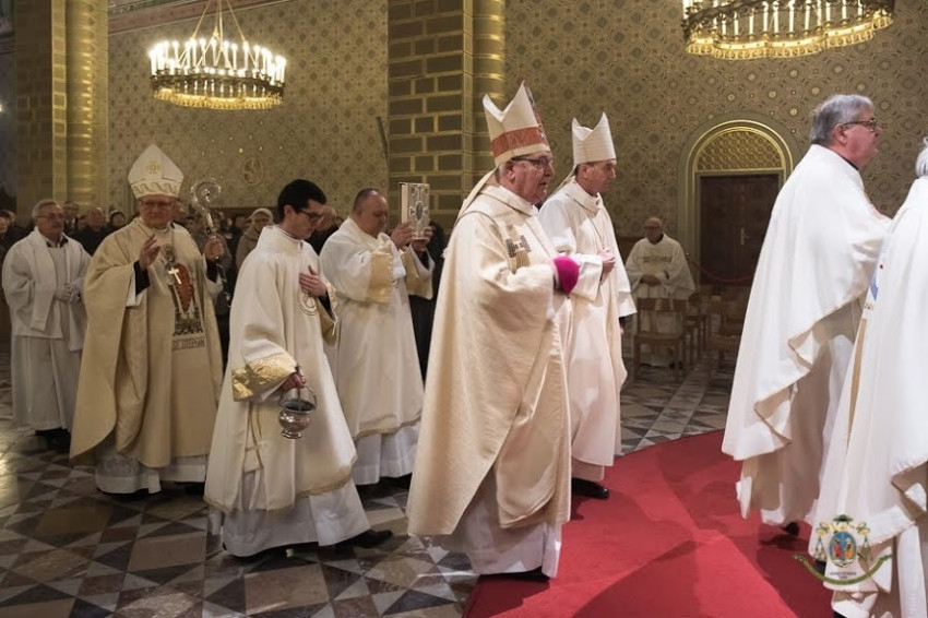 Udvardy György pécsi megyéspüspök megköszönte a két nyugalmazott püspök szolgálatát, hogy vállalták a szolgálatot és a közösséget Krisztussal. Nem egyszerű és zavartalan időszakban váltak püspökké, ugyanis a rendszerváltás utáni évek az Egyház számára is sok kihívást jelentettek. „Ebben a harminc esztendőben egészen bizonyos, hogy a keresztnek a terhe, a keresztnek a súlya érintette Mihály püspök atyát is és érintette Asztrik püspök atyát is. De mert Krisztushoz kötötték az életüket, ezért a kereszt nem csak teher, nem csak korlát, nem csak veszteség, hanem számunkra Isten ereje és bölcsessége és az életnek a forrása. Így tekintünk a harminc év eredményeire, küzdelmeire és keresztjeire is és így adunk hálát Krisztus keresztjéért is, mert számunkra ez Krisztus élete” – hangsúlyozta a főpásztor.