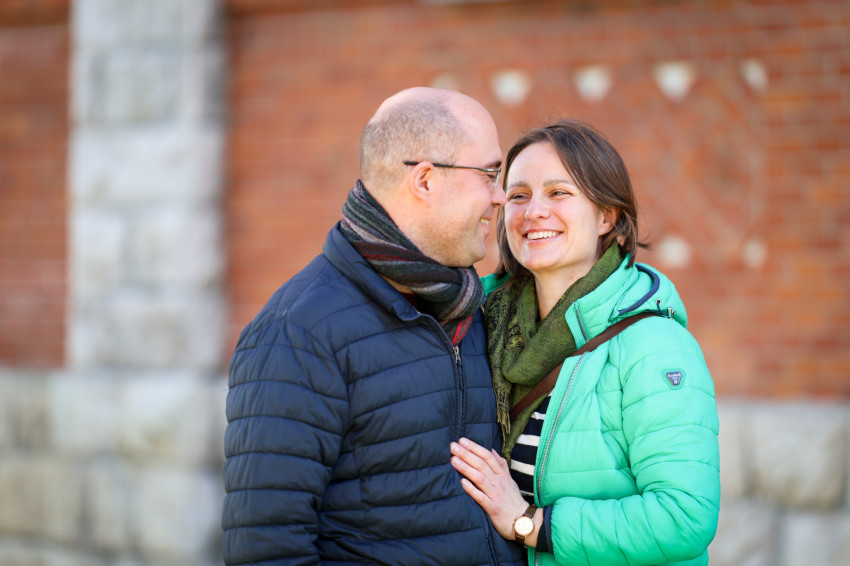 Réka és István az egyetemen találkoztak, harmadévben közös előadásokra jártak, sokat utaztak együtt a metrón, így volt alkalmuk beszélgetni, és egyre jobban megismerni egymást. István elmesélte, hogy amikor már fontolgatta a lánykérést, a Magyar Kurír egyik cikkében – amit a mai napig őriz – olvasta Ferenc pápa gondolatait arról, hogy kérjük a Szűzanya segítségét, és merjük elhatározni magunkat, döntéseket hozni. Ez megerősítést jelentett számára. Megismerkedésük után négy évvel, a Tihanyi Bencés Apátság előtt álló keresztnél megkérte Réka kezét, és az első csókhoz képest napra pontosan öt évvel később összeházasodtak. Mindketten úgy érezték, hogy megtalálták a társukat, akit kerestek. Ők úgy fogalmaznak: egyszerre „pendülnek”. Sokszor ki sem kell mondaniuk, mit szeretnének, szinte belelátnak egymás gondolataiba. Idén nyáron tizenkét éve lesz annak, hogy házasságot kötöttek Budapesten, az angyalföldi Szent Mihály-plébánián, ami meghatározó hely az életükben. Most is itt találkoztunk velük.