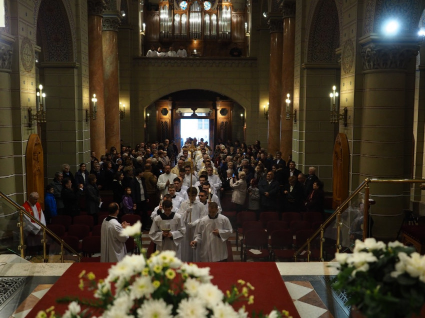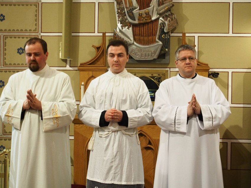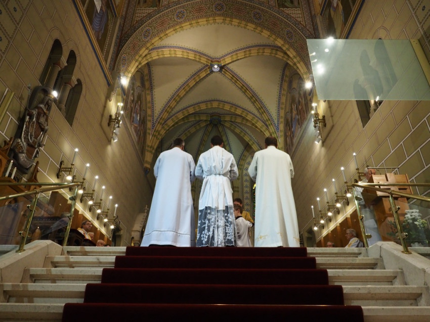 A szertartás folytatásában már az újonnan felszentelt diakónusok voltak a főpásztor segítségére a szentmise bemutatásában.