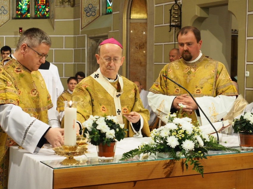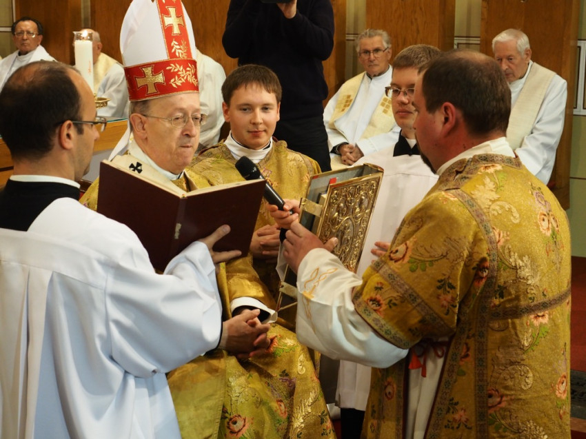 A homíliát követően a három szentelendő ígéretet tett feladata hűséges vállalására, majd a Mindenszentek litániája elimádkozása után a szentelés szertartása következett.