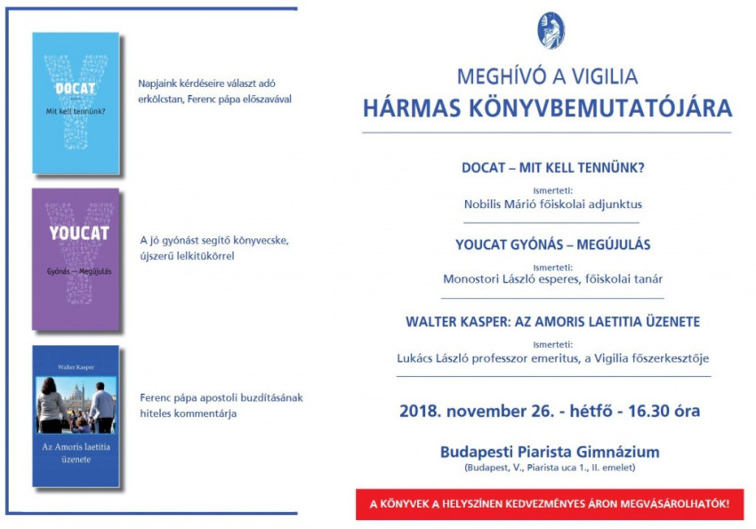 Végezetül Lukács László professzor emeritus, a Vigilia főszerkesztője ismerteti Walter Kasper bíboros Az Amoris laetitia üzenete – Ferenc pápa apostoli buzdításának hiteles kommentárja című művét.
