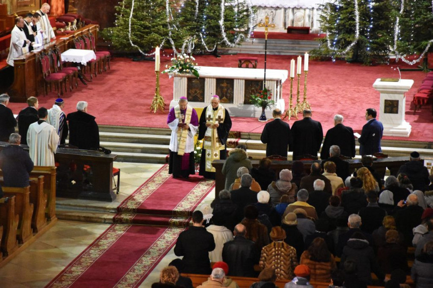 Január 19-én, vasárnap este pedig a római katolikus székesegyházba érkeztek a keresztény felekezetek elöljárói, a város plébánosai és számos hívő. Böcskei László megyéspüspök nyitotta meg az imaórát, majd arról beszélt, hogy az imában Istent Atyánknak szólítjuk, egymást pedig testvéreknek. Az imádság nyelvén, közös nyelvünkön akarunk megszólalni, amikor az emberiség megosztottság okozta tragédiáinak megannyi formáját tapasztaljuk. Az egységet kifejező lehetőségeket keressük és akarjuk megragadni, Isten teremtett világának szolgálatában. A kölcsönös megismerés, elfogadás és örömmegosztás jegyében kezdjük el ezt az imahetet – mondta a házigazda püspök, majd a testvériség kifejezésére hívta meg a jelenlevőket, akik a béke jeleként kezet fogtak egymással.