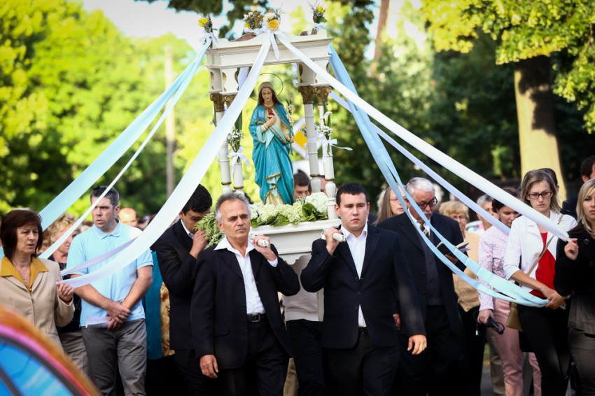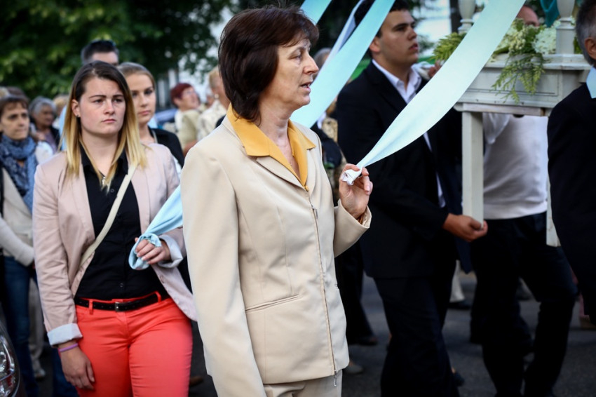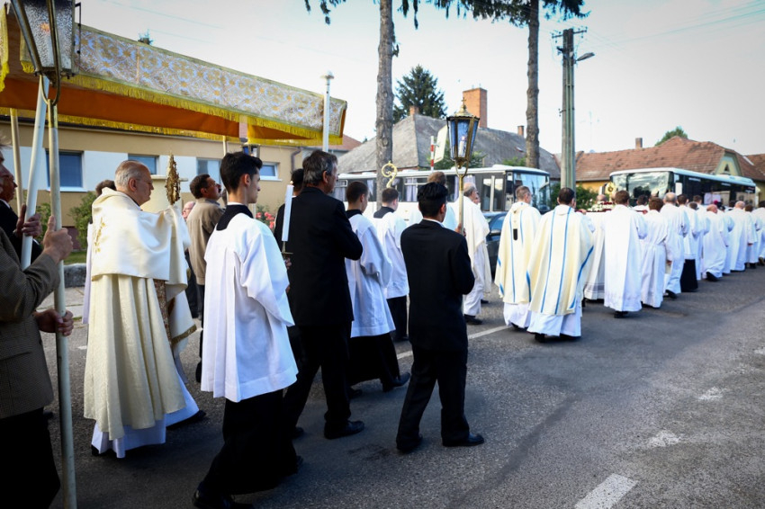 Erdő Péter bíboros a szentbeszédet követően megáldotta a vérrel könnyező Szűzanya kegyképének másolatát, amelyet az áldozás után körmenetben vittek végig a faluban az Oltáriszentséggel és egy Szűz Mária-szoborral együtt.